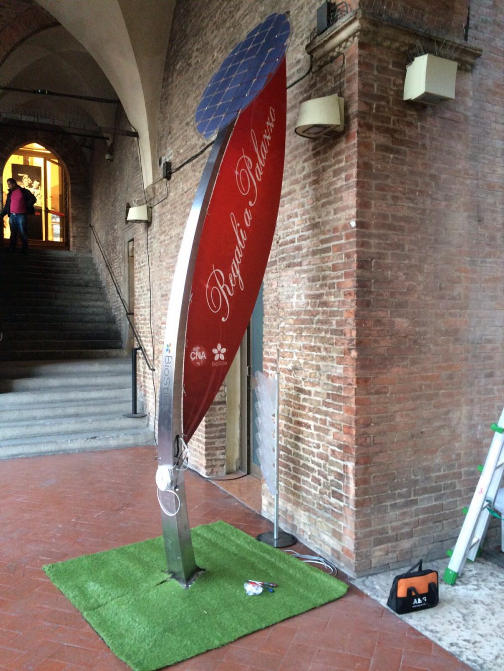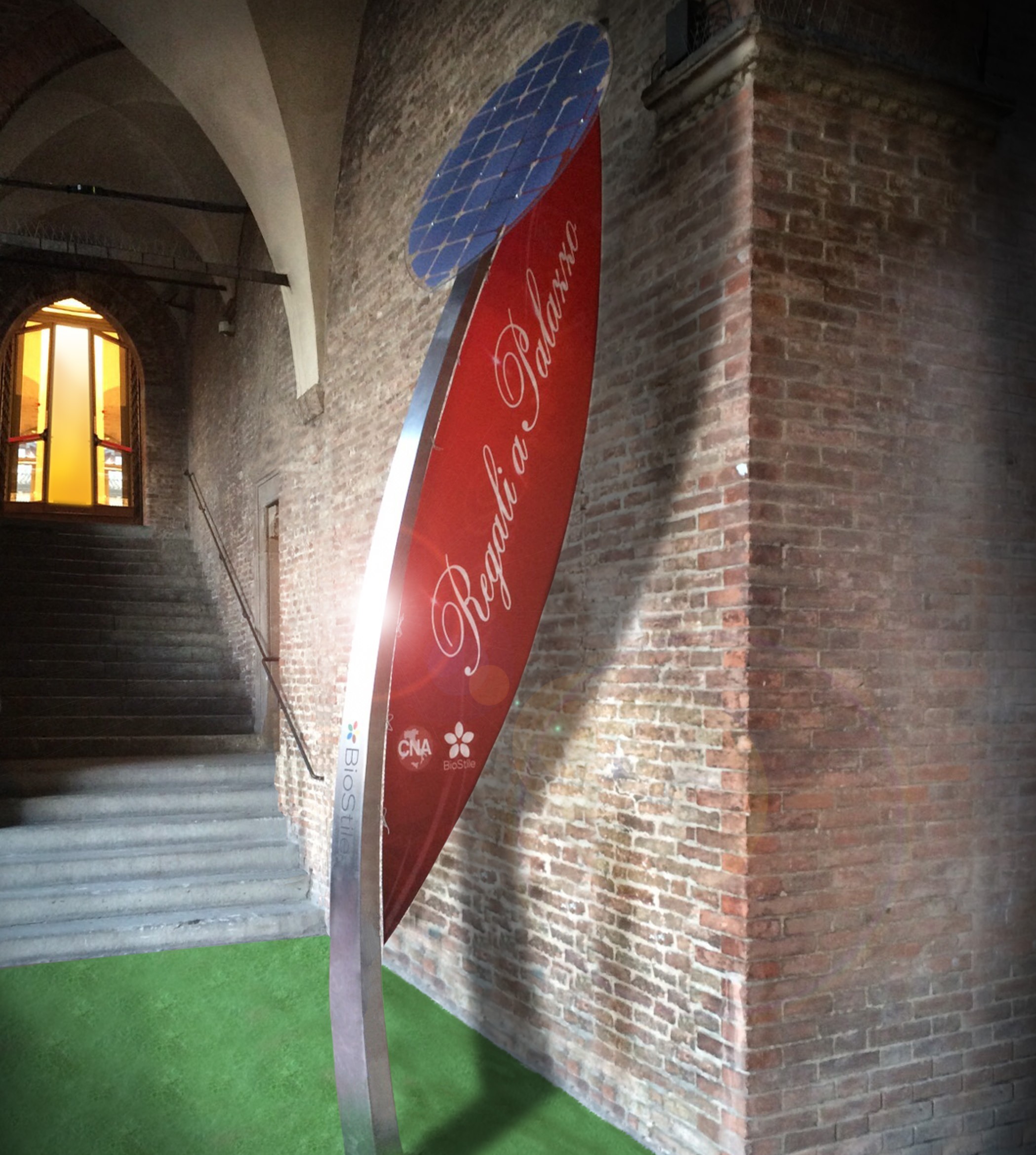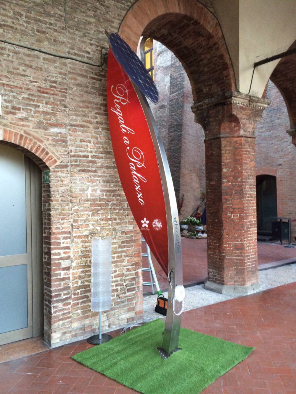 La “bandiera” facilmente intercambiabile, permette così di adattare Vela ad uno specifico evento. Per le aziende questo rappresenta sicuramente un modo più evoluto di Marketing integrato ad un messaggio di sostenibilità ambientale ed economica.